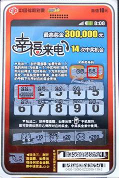 像撥手機號碼一樣,他先從玩法一開始“撥”號,一連刮了6張,“撥了多遍”的號,只收獲了20元。他心里糾結了一下,心想,“難道感覺不對?”簡單的調整了一下,他就刮開了第7張的“玩法一”,“中獎號碼”顯示為“05、11”,當他刮開“我的號碼”時,第一行第一個號碼就是“11”,大大的¥300000映入眼簾,仔細數了一下,原來竟中了30萬元。他當場被“電倒”,腦子一片空白,不敢相信一個溫馨的電話卻讓他收獲了巨大的驚喜!隨即,他將中獎的好消息電話通知了妻子,也讓她切身感受了一下“幸福”的“電波”。