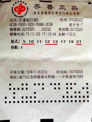 后來全國彩票行業(yè)告別了有獎募捐時代,投注站在全國各地如雨后春筍般出現(xiàn)。老張從這一時期開始嘗試買電腦彩票,從最早的“齊魯風(fēng)采”30選7(現(xiàn)更名為“七樂彩”)到后來的23選5、雙色球、3D以及熱銷的快開游戲群英會,他都有所涉獵。這期間,零星中過不少小獎,有時朋友跟他開玩笑問他是買彩投入的多還是收獲的多時,他就哈哈一笑說:“習(xí)慣養(yǎng)成就改不掉了,即使不中獎也會堅持買,這就叫‘日行一善’!