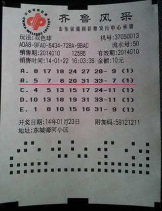 【東營】銀行辦業務隨機購彩 意外中得雙色球12萬