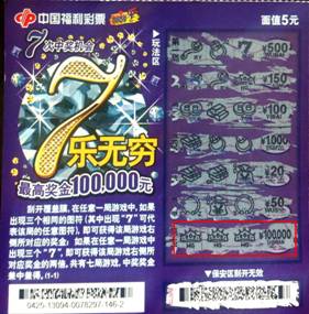 這天,下班后的孟先生走在街道上,突然看見了37131113福彩投注站,隨即,他直接走了進去。由于之前沒有接觸過福利彩票,出于好奇想嘗試一下,經了解后他要了兩張5元的“7樂無窮”刮刮樂,再熟悉玩法后刮了起來。第一張沒有中,他嘆氣道:“哪有天上掉餡餅的好事”接著又刮開第二張,前幾局游戲中依然沒有中,孟先生已經打算放棄了,可是最后一局好運降臨了,出現了三個相同圖案:皇冠!再看對應獎金,100000元!“天哪!是頭獎!”他以為自己在做夢,用力掐了一下自己,疼痛感證明這是真的,天上真的掉下來餡餅,還是塊大餡餅。孟先生初次購彩一氣呵成將10萬元頭獎收入囊中,短短的10分鐘驚呆了周圍彩友。