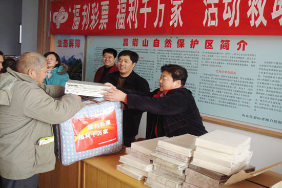 2007年春節期間煙臺福彩為低保戶送去了棉被
