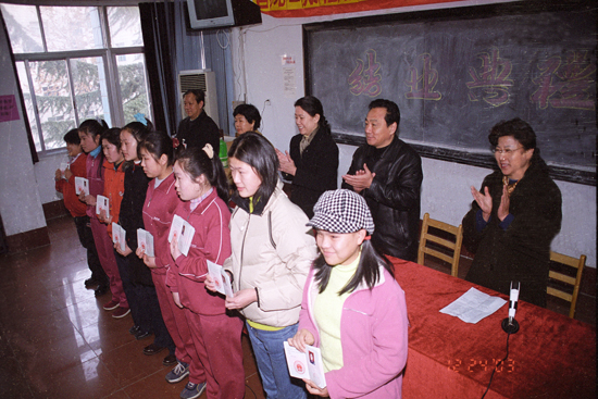 2003年12月,第二期“福彩牽手春蕾女童”技術培訓班結業