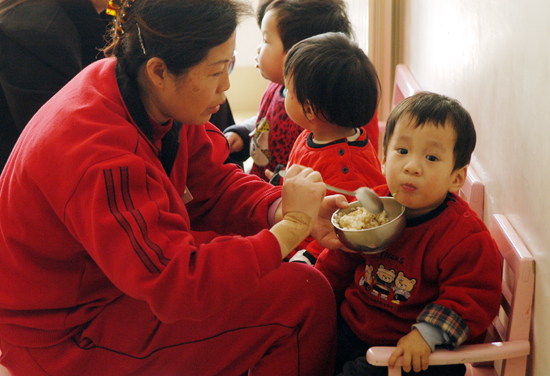 在社會(huì)福利院工作人員精心照料下,健康成長(zhǎng)的孩子