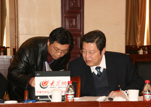 圖為濟(jì)南市長(zhǎng)張建國(guó)瀏覽大眾網(wǎng)濟(jì)南論壇網(wǎng)頁(yè)