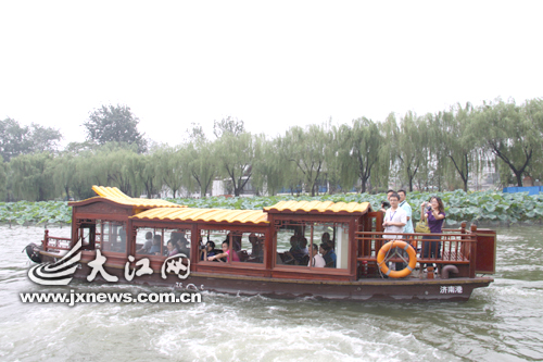 進入大名湖公園后,采訪團直接乘坐游船飽覽湖面美景,清水依依、荷葉顫顫、濟南特有的城市風情讓大家流連忘返,位于濟南市中心的大明湖是4A級景區,被譽為“泉城明珠”,同趵突泉、千佛山并稱濟南三大名勝。