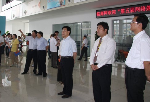 臨連成敏(右三)和記者一起考察中國臨沂商城電子交易中心
