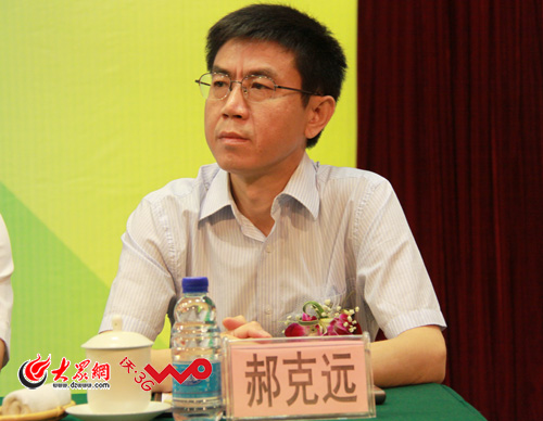 大眾網8月21日訊 第五屆山東網絡媒體山東行今天上午在濟南正式啟動,國內40余家主流網媒體共80多名記者參加活動。圖為大眾報業集團黨委常委、副總編輯郝克遠出席啟動儀式。