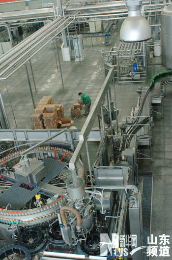新華網山東頻道8月24日電 23日上午,中國網絡媒體山東行采訪團的記者們走進泰山啤酒城,參觀啤酒從糖化到裝瓶的生產全過程,并品嘗到“剛下生產線”的純正黑啤酒。