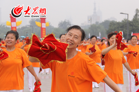 大眾網濟南8月8日訊 (記者 閆明清 馮煒程 吳哲 劉國棟 趙洪棟) 8日上午,山東省暨濟南市“全民健身日”啟動儀式在濟南泉城廣場舉行,來自濟南各區市的近3000名群眾表演了健身秧歌、太極拂塵、抖空竹等豐富多彩的全民健身項目,十一運圣火火種在泰山采集的場景也在廣場上重現。