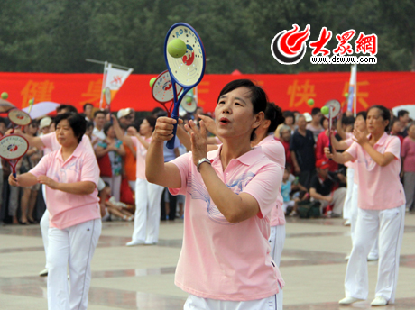 濟南市民在活動現場做柔力球表演