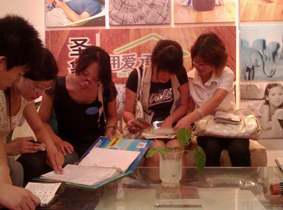 如果有人因為我們初出茅廬而忽視我們的能力,如果有人因為我們是80后而認為我們缺乏艱苦精神,如果有人因為我們是有個性的一代而懷疑我們的集體精神,那么,培訓課上唰唰的筆記,調研時腳上的水泡,走訪客戶時燦爛的微笑,都是對著以上問題的解答。我們有一個響亮的名字,那就是----09圣象地板大學生暑期實習團隊。
