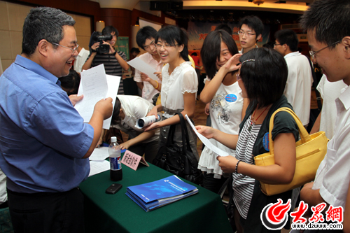 大眾網(wǎng)濟(jì)南7月12日訊 (記者 趙爾印)今天上午9點(diǎn)鐘,圣象、蒙牛和蘇寧等24家企業(yè)來(lái)到山東新聞大廈,在大學(xué)生帶薪實(shí)踐崗見(jiàn)面會(huì)現(xiàn)場(chǎng)對(duì)報(bào)名前來(lái)的大學(xué)生進(jìn)行面試。與普通招聘會(huì)不同的是,在帶薪實(shí)踐崗的招聘中,無(wú)論是用人單位還是找工作的大學(xué)生,都顯得很輕松。