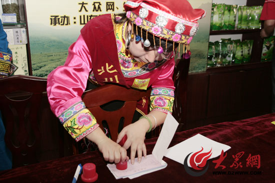 北川茶企員工正為購茶者開據購買收據