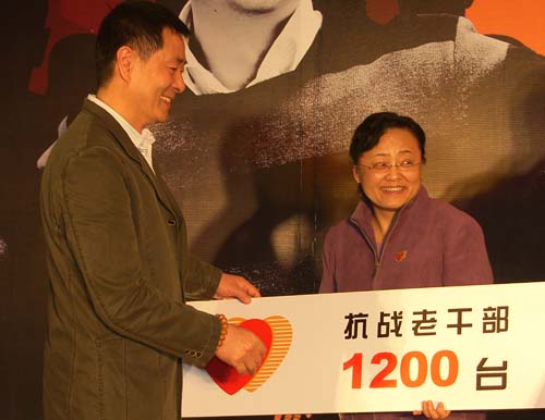 4月14日上午,濟南“貼心一鍵通”正式運行暨宣傳員聘請儀式上,濮存昕向單位和市民代表贈送呼叫器。