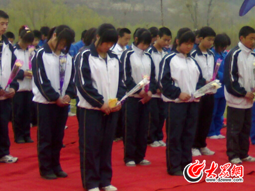 大眾網濟南4月3日訊 (大眾網-齊魯手機報記者 劉水清 趙爾。“天堂的朋友,你還好嗎?在那個世界里,你生活得快樂嗎?”明天就是清明節,距離“5.12汶川大地震”過去已經10個月又22天。4月3日上午,北川縣職業中學在山東復課的96名師生來到山東福壽園文化陵園,緬懷在地震中遇難的同胞,告訴天堂之上的他們:天堂的朋友啊,安息吧,我們一定會帶著你的夢想走好每一步!
