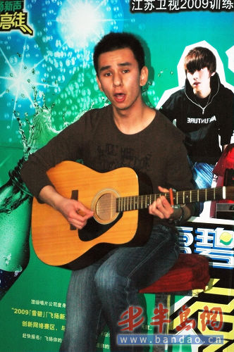 在本次參賽的168名選手中,第1108號選手王崠憑借嫻熟的吉他技巧、渾厚的男中音和富有異域特色的外表征服了在場評委。