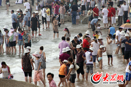 當地市民和外地游客接踵摩肩扎堆兒海邊,沐浴著習習海風,享受難得的夏日清涼