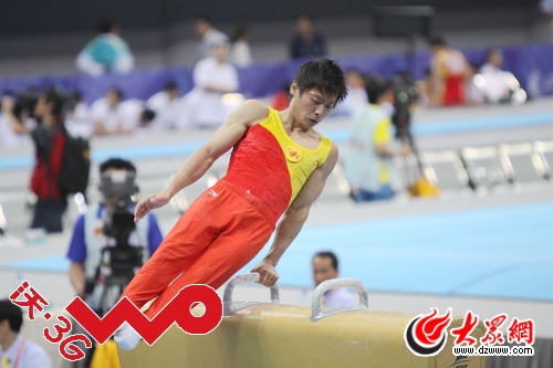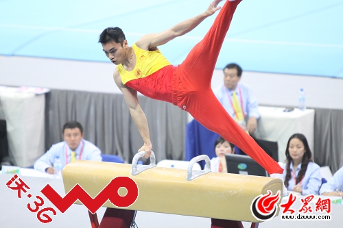 馮敬在鞍馬進(jìn)行鞍馬比賽