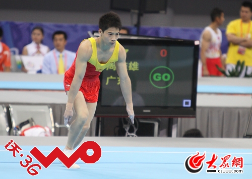 賽后被廣東拉拉隊(duì)親切的稱呼小熊的他告訴記者,自己以往做單杠動(dòng)作時(shí)常常失敗,如今他已經(jīng)克服了這一瓶頸。周施雄初出茅廬面帶羞澀的對記者說:“后期的一些訓(xùn)練和合練給我提升了很多的信心和能力,到了賽場以后的一些訓(xùn)練還不是很好,后來,我回到賓館以后就不停地看視頻找感覺,并且,這個(gè)動(dòng)作我從小就開始做,做得比較久了,所以今天能撐下來應(yīng)該不是很難的問題。”