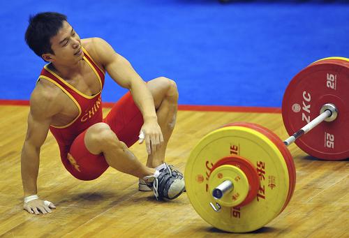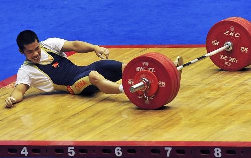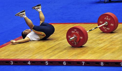 這是10月23日,福建隊選手陳洪慶在男子舉重62公斤級的比賽中。他獲得了這個項目的第六名。