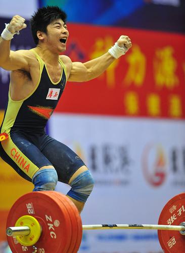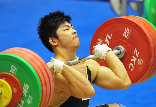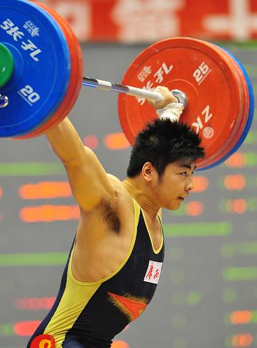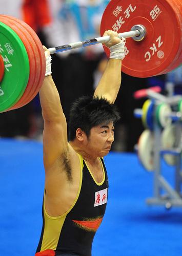 10月25日,陸永在比賽中。當日,在第十一屆全運會舉重男子85公斤級比賽中,廣西隊選手陸永以376公斤的總成績獲得冠軍。 新華社記者王雷攝