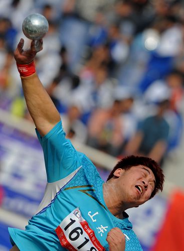 10月26日,在第十一屆全運會田徑男子鉛球決賽中,山東選手郭延祥最后一投以19米11獲得亞軍。