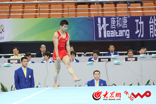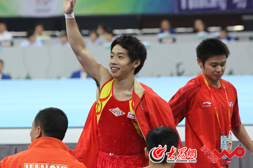 大眾網(wǎng)-山東聯(lián)通3G聯(lián)合報道(記者 明清 爾印 吳哲 新婷 洪棟)在今晚舉行的第十一屆全運會體操單項決賽中,第一場是男子單項自由操的決賽。9月20日晚上8點十分左右,男子自由操冠軍誕生,四川名將鄒凱以15.45分的超高分摘金,山東隊的黃玉國以15.325分屈居亞軍,第三名是廣東隊的梁富亮。