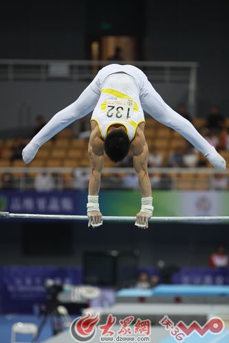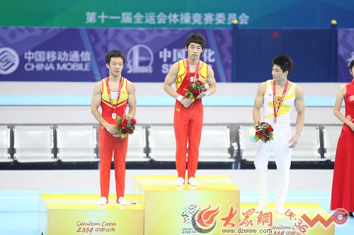 大眾網(wǎng)-山東聯(lián)通3G聯(lián)合報(bào)道(記者 明清 新婷 爾印 隋喬 洪棟)第十一屆全運(yùn)會(huì)體操項(xiàng)目的比賽完美謝幕。最后一輪舉行的是男子單杠項(xiàng)目的比賽,經(jīng)過(guò)激烈的較量, 北京奧運(yùn)冠軍鄒凱憑借完美的發(fā)揮登上冠軍寶座,斬獲金牌,郭偉陽(yáng)屈居亞軍,呂君海獲得季軍。