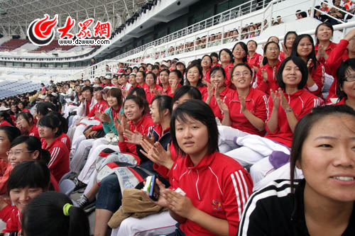 “每一個中國人都非常關注國慶閱兵式,咱們十一運開幕式參演人員也有這方面的要求,經過綜合考慮之后,我們決定把大家組織起來,一起觀看國慶閱兵式!笔贿\組委會大型活動部的領導在接受采訪時這樣說,“大家通過電視觀看閱兵式,感受祖國的富強、社會的發展,這本身就是一次很好的受教育機會。有了榜樣,我們會把工作做得更好,讓十一運開幕式更加精彩!