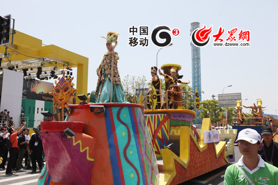 大眾網-移動G3上海5月3日訊(特派記者 馮煒程)5月3日中午,2010年上海世博會正式啟動“歡樂盛裝大巡游”開幕周巡演,世博吉祥物海寶、各種明星玩偶以及漂亮的花車將世博園的歡樂氣氛引向高潮。 3日中午,上海世博園內氣溫再次逼近30攝氏度,不過比高溫更熱的,是世博大道上精彩、熱鬧、好玩的“歡樂盛裝大巡游”。記者在世博園歐洲廣場旁邊的巡游出發(fā)點看到,大批游客早早等候在此,尤其是一些小朋友,看到眼前打扮華麗的玩偶,裝點俏麗的魔法師,以及各式各樣亮麗的花車,一個個高興地合不攏嘴。 音樂響起,玩偶們或在花車上起舞,或在世博大道上蹦蹦跳跳,小朋友和家長們跟著花車隊伍一路追逐,歡呼,世博會節(jié)日的氣氛達到高潮。 據了解,以“帶著世界的笑容、歌唱城市的未來”為主題的2010年上海世博會“歡樂盛裝大巡游”歷時184天,將分設浦東和浦西兩條巡游線路,生動展示未來理想城市中多元文化繁榮、和諧、歡騰的景象。這場快樂的“嘉年華”預計將吸引三千萬中外游客,成為世博會歷史上規(guī)模最大的巡游表演。 上海世博會事務協調局胡勁軍副局長表示:“通過表現多元文化的和諧歡聚及對未來城市的暢想,上海世博會‘歡樂盛裝大巡游’將快樂演繹‘城市、讓生活更美好’的世博理念。為參觀2010年上海世博會的中外游客呈現一場場歡樂盛宴。”