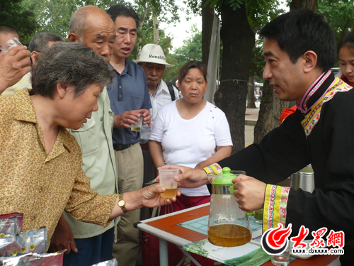 大眾網濟南6月6日訊(大眾網-生活日報聯合報道組 記者 曹亮 劉國棟 王磊)今天上午8點,由大眾網、生活日報等媒體發起的“今夏請喝北川茶,感恩山東之旅”公益活動走進濟南市赤霞廣場,附近小區居民紛紛聞訊而來,具有“降血糖、降血脂、降尿糖”等功效的苦蕎茶最受人們歡迎,許多年輕市民更是把北川苦蕎茶作為禮物送給自己的父母,在獻愛心的同時,盡一份孝心。