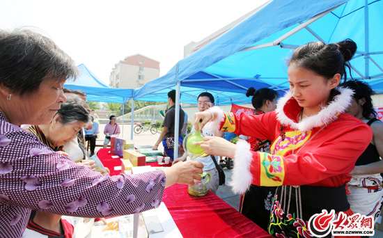 大眾網濟南5月30日訊(大眾網-生活日報聯合報道組 記者 曹亮 劉國棟)伴著歡快的羌族音樂,一群身著艷麗的羌族青年跳起了鍋莊舞,絡繹不絕的市民們在北川茶“感恩山東之旅”的展臺,一邊品茶,一邊欣賞著獨具特色的羌族舞蹈。今天上午10點,北川茶“感恩山東之旅”活動在南全福廣場正式啟動。