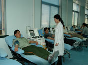 志愿者在獻(xiàn)血