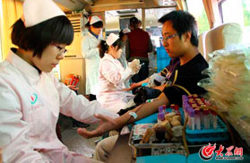 志愿者開展無償獻血活動