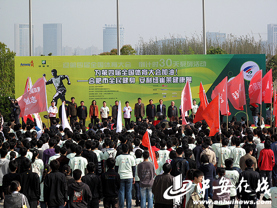 在第四屆全國體育大會倒計(jì)時30天之際,今天上午,“2010安利紐崔萊健康跑”活動在合肥奧體中心鳴槍起跑。奧運(yùn)會冠軍、“體操全能王”楊威與“小燕子”黃奕在活動當(dāng)中聯(lián)袂領(lǐng)跑,與近2萬名合肥市民一起跑起來,為“四體會”加油!