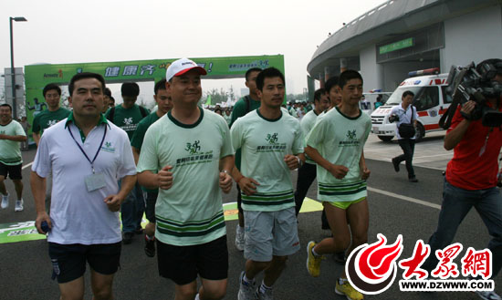 大眾網副總編輯姜長勇、安利(中國)日用品有限公司山東分公司總監王海軍等領導與奧運跳水冠軍王峰共同領跑