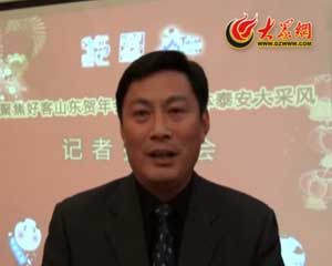 在山東賀年會期間,我代表臨沂市旅游局向大眾網、全國大眾網的觀眾拜個年,祝各位網友在新的一年里身體健康,萬事如意,歡迎到臨沂來旅...