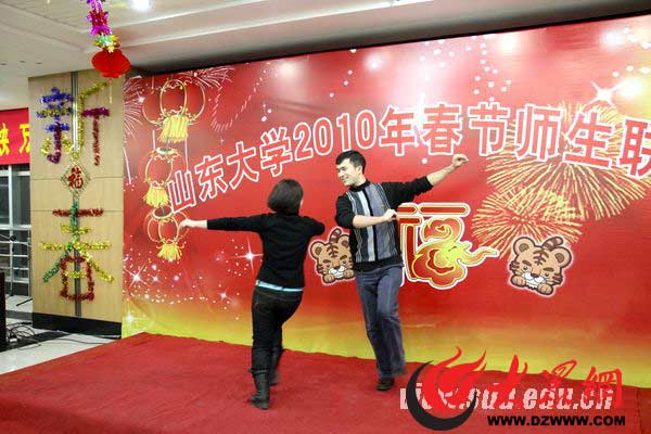 2月12日是農歷的臘月二十九,大街上的年味兒越來越濃。晚上19:30開始,山東大學中心校區綜合服務樓三層大廳里,歌聲、笑聲、歡呼聲響成一片,山東大學2010年春節師生聯歡會正在這里激情上演。
