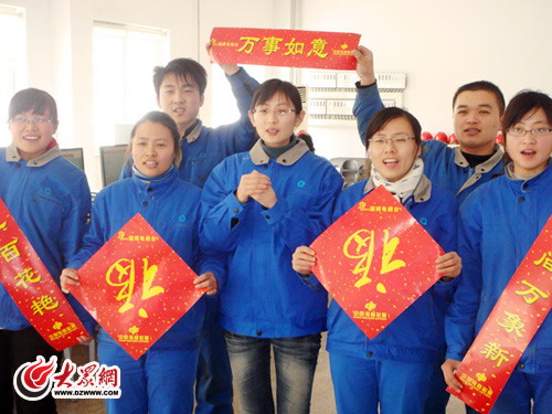 大眾網淄博2月14日訊 春節期間,淄博職業學院有幾百名大學生放棄了回家和家人團聚的機會,而選擇留在頂崗實習單位和同事們一同堅守在生產一線,在忙碌中度過一個有意義的農歷新年,同時也為來年正式走上工作崗位積累經驗。進入臘月,學院老師分別到同學們所在的單位走訪慰問,給大家送上新年的祝福。同學們也從一線向自己的家人和同學送出美好的祝愿,祝愿大家新年快樂,祝同學們學業有成。(曹亮 陳江寧