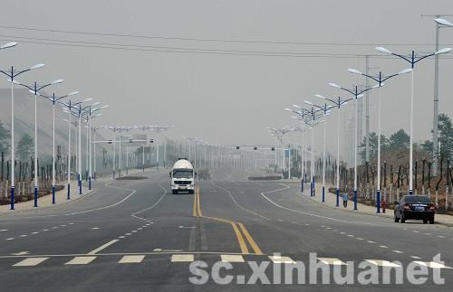 這是由江蘇省援建的四川省綿竹市開發區道路(4月30日攝)。