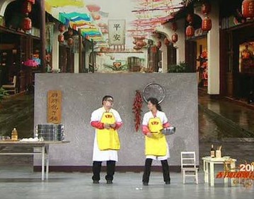 《一句話的事兒》反映了夫妻之間因為善意的謊言而引發(fā)誤會的一個生活片段,通過藝術的夸張表現(xiàn),善意調(diào)侃了人們善于、樂于為朋友掩飾、開脫的一種為人處事的新方式。這個作品的成功入選,富有沖擊力的語言表現(xiàn)是作品最終登上春晚舞臺的關鍵。
