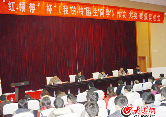 2007年年底,隨著愛心助學(xué)崗的啟動,公司舉辦了“紅領(lǐng)帶”杯我的特困生同學(xué)作文大獎賽活動,圖為在山東師范大學(xué)多媒體室召開的頒獎儀式現(xiàn)場。