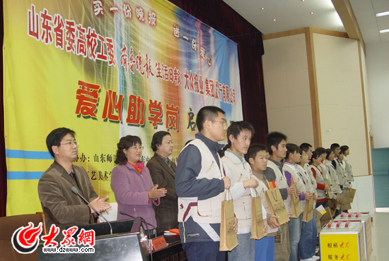 買一份晚報(bào)、獻(xiàn)一份愛(ài)心。2006年11月“齊魯晚報(bào)愛(ài)心助學(xué)崗”正式在山東長(zhǎng)清和章丘兩個(gè)高校科技園內(nèi)的30多所高校啟動(dòng),首批品學(xué)兼優(yōu)的貧困大學(xué)生上崗,通過(guò)售報(bào)收入改善生活困難局面。