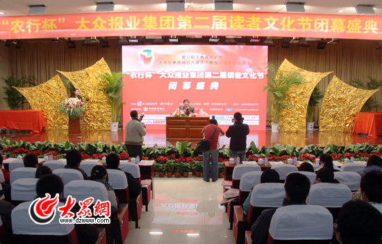 大眾網濟南12月16日訊 (記者 吳哲 盛堃)今天上午,以“感恩、回饋、傳承”為主題的“農行杯”大眾報業集團第二屆讀者文化節在歷時4個多月后閉幕。在長清山東省中醫藥大學舉行的讀者節閉幕盛典上,大眾報業集團發起的“愛心助學售報崗”活動不僅迎來了30個崗位的擴容,大學生素質接力大賽無人售報公益項目也于今日正式在駐濟各高校啟動。