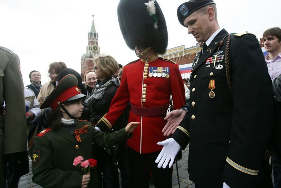 俄羅斯小女孩兒與美英士兵交流