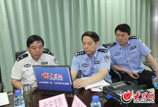 濟(jì)南市治安支隊(duì)支隊(duì)長(zhǎng)王建華(左一)在線(xiàn)回答網(wǎng)友問(wèn)題