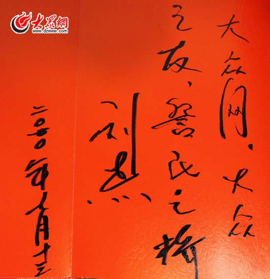 臨行前,劉杰欣然為大眾網提筆留言——大眾網:大眾之友、警民之橋。