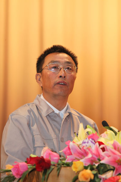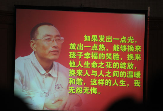 郭明義作報告,報告的題目是《做一個有益于人民的人》。