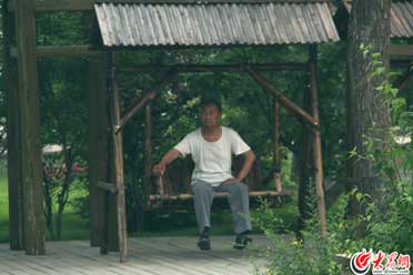 老人在濕地公園里悠