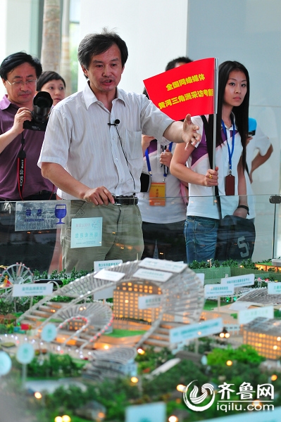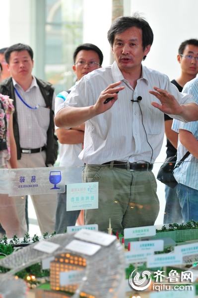 20日下午,在中國(guó)太陽(yáng)谷沙盤前,被譽(yù)為“中國(guó)太陽(yáng)能之父”的皇明太陽(yáng)能集團(tuán)董事長(zhǎng)黃鳴向記者介紹中國(guó)太陽(yáng)谷的建設(shè)情況。據(jù)悉,今年9月,主題為“太陽(yáng)能改變生活”的第四屆世界太陽(yáng)城大會(huì)將在德州市舉行。(攝影 張曉博)